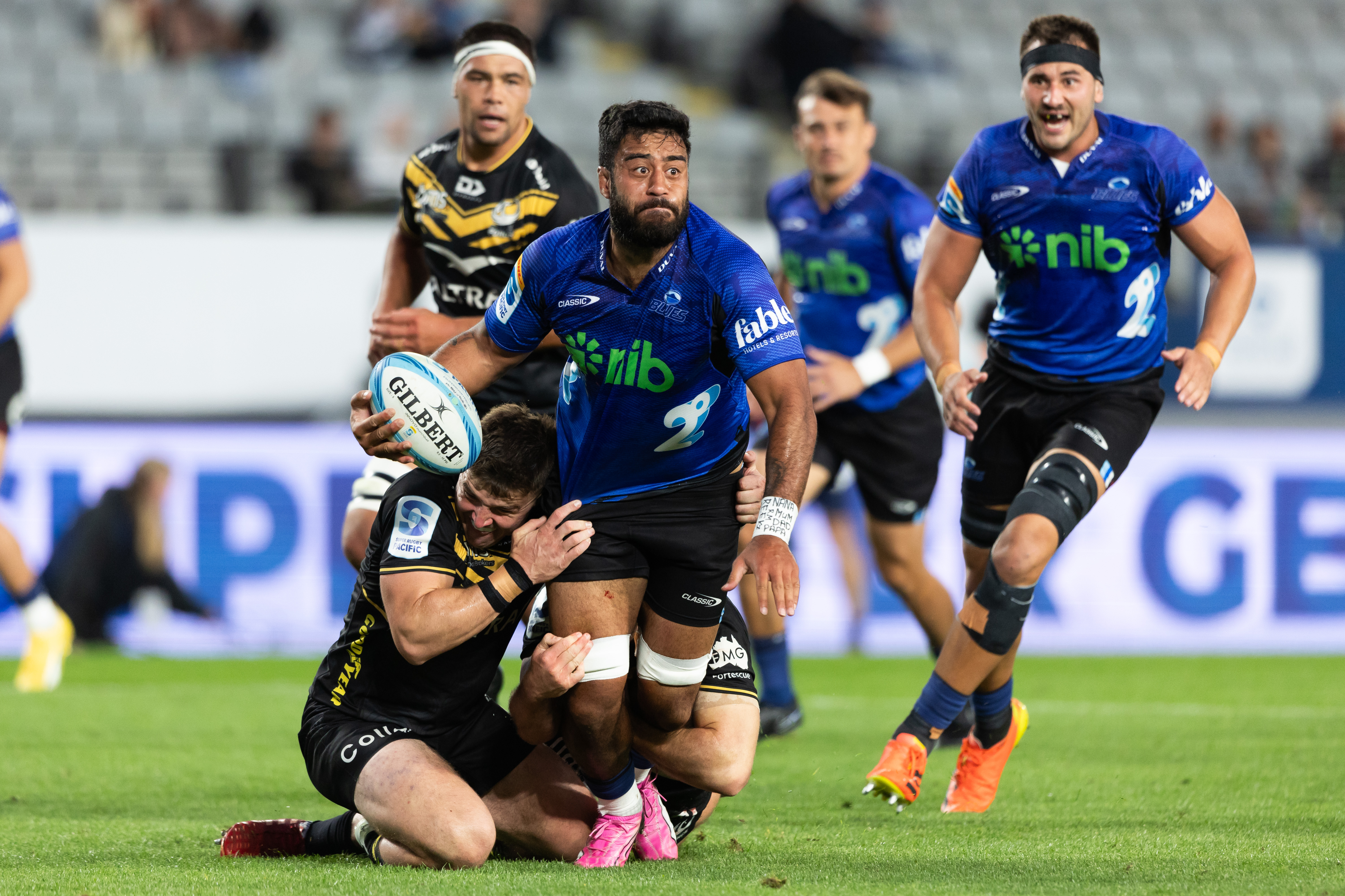 BLUES (1-15): Ofa Tu'ungafasi, Ricky Riccitelli, Marcel Renata, Patrick Tuipulotu (c), Laghlan McWhannell, Akira Ioane, Dalton Papali'i, Hoskins Sotutu, Taufa Funaki, Harry Plummer, Caleb Clarke, Bryce Heem, Rieko Ioane, Mark Tele'a, Cole Forbes