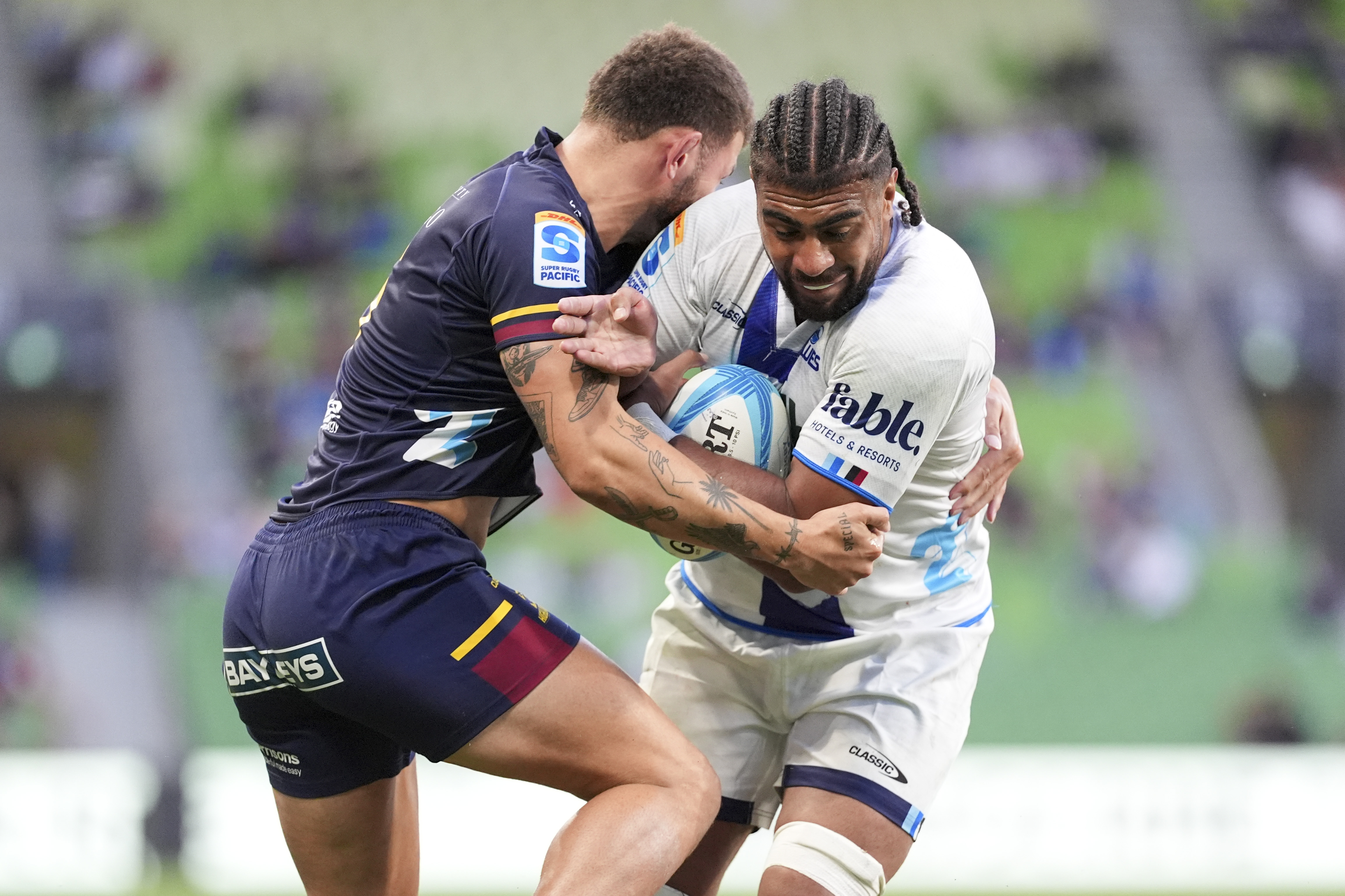First five-eighths Stephen Perofeta was another to catch the eye, especially for his run from behind the Blues' goalline that carried them to a try to claim the lead on halftime.