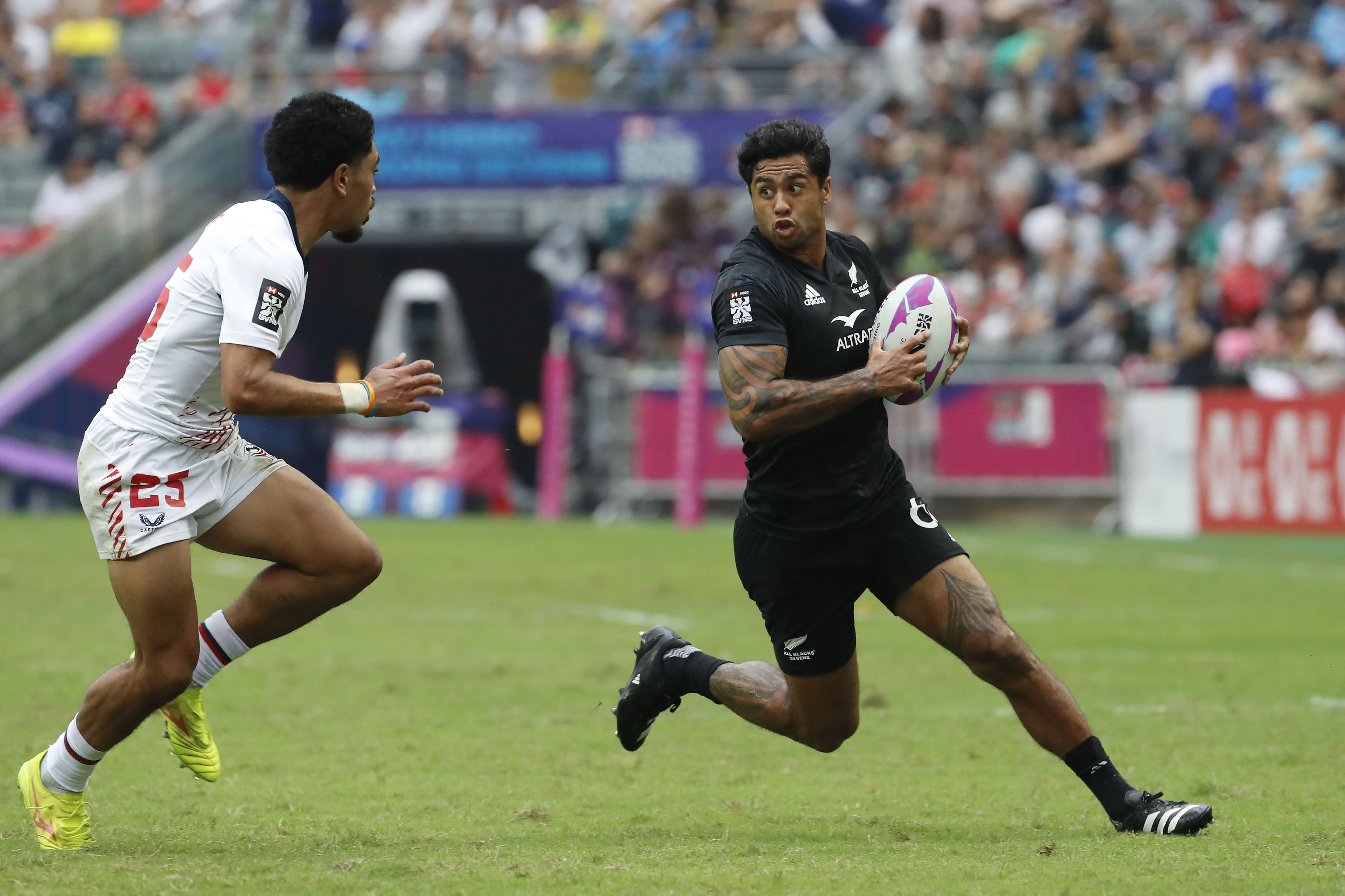 New Zealand rallied from 12-7 down to eliminate Fiji in the quarters. Regan Ware (122 SVNS tries) had brushed off two defenders to open the scoring. Ware was the top tackler in group play.