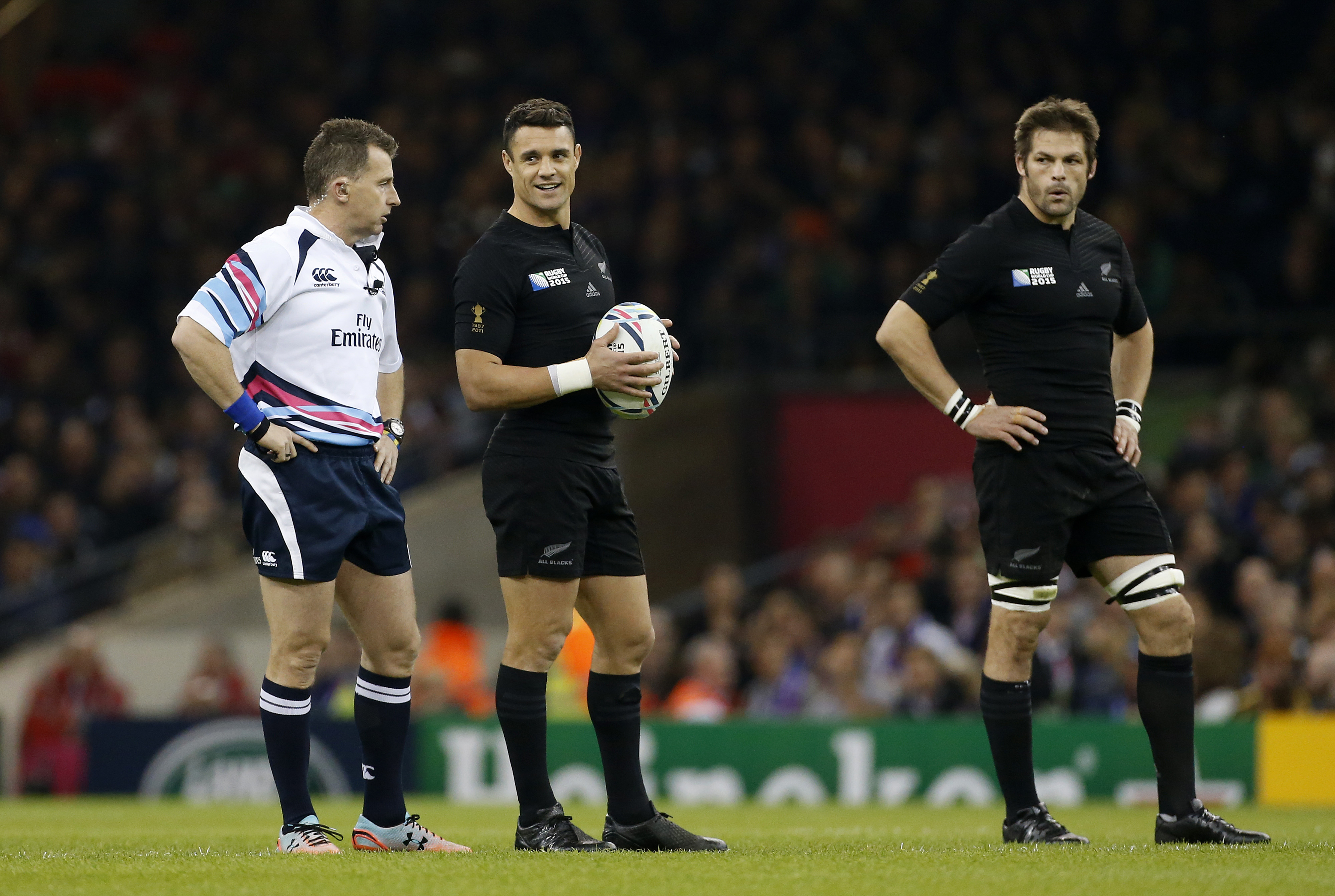 During a break in play, All Blacks legend Dan Carter, who was playing his last Test before retirement, was lining up a penalty goal attempt after an exhausting passage of play.