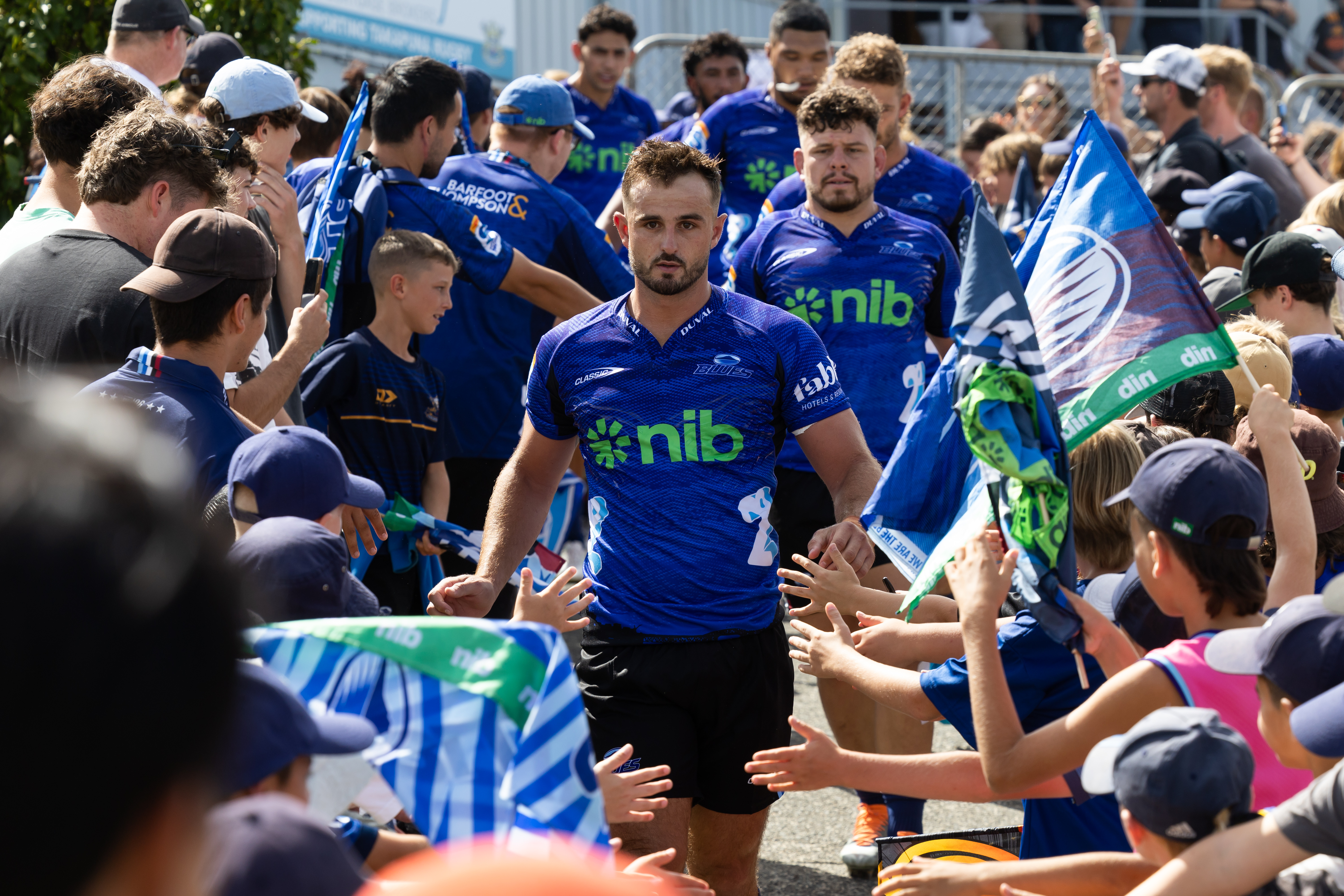 Blues (1-15): Joshua Fusitu'a, Kurt Eklund, Angus Ta'avao, Sam Darry, Josh Beehre, Anton Segner, Dalton Papali'i (c), Hoskins Sotutu, Finlay Christie, Stephen Perofeta, Caleb Clarke, Harry Plummer, Rieko Ioane, Mark Tele'a, Zarn Sullivan